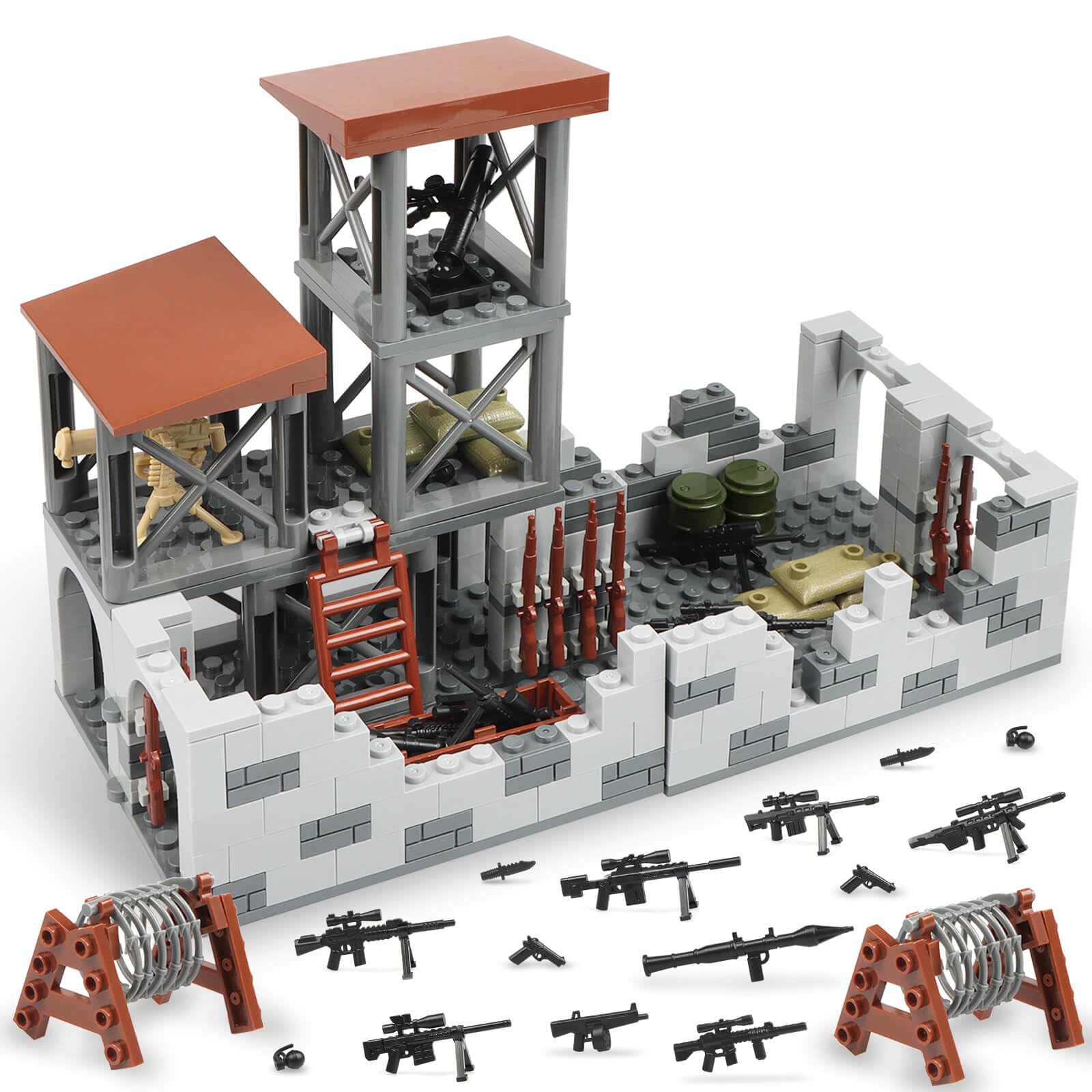 Amazon Com Finger Rock Military Base Building Block Set Ww2 Army Mini War Accessories Kits Military Ruins Guard Tower Guns Army Supplies Block Toy For Kids 8 10 12 14 Toys Games